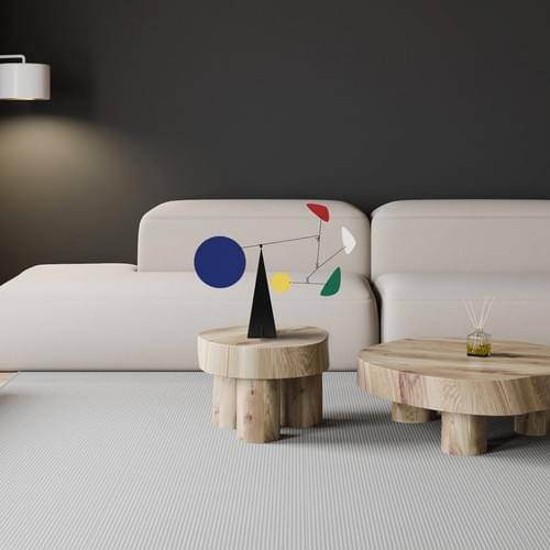 Móvil con soporte, 43 cm de ancho y 34 cm de alto, con base de 25 cm.
